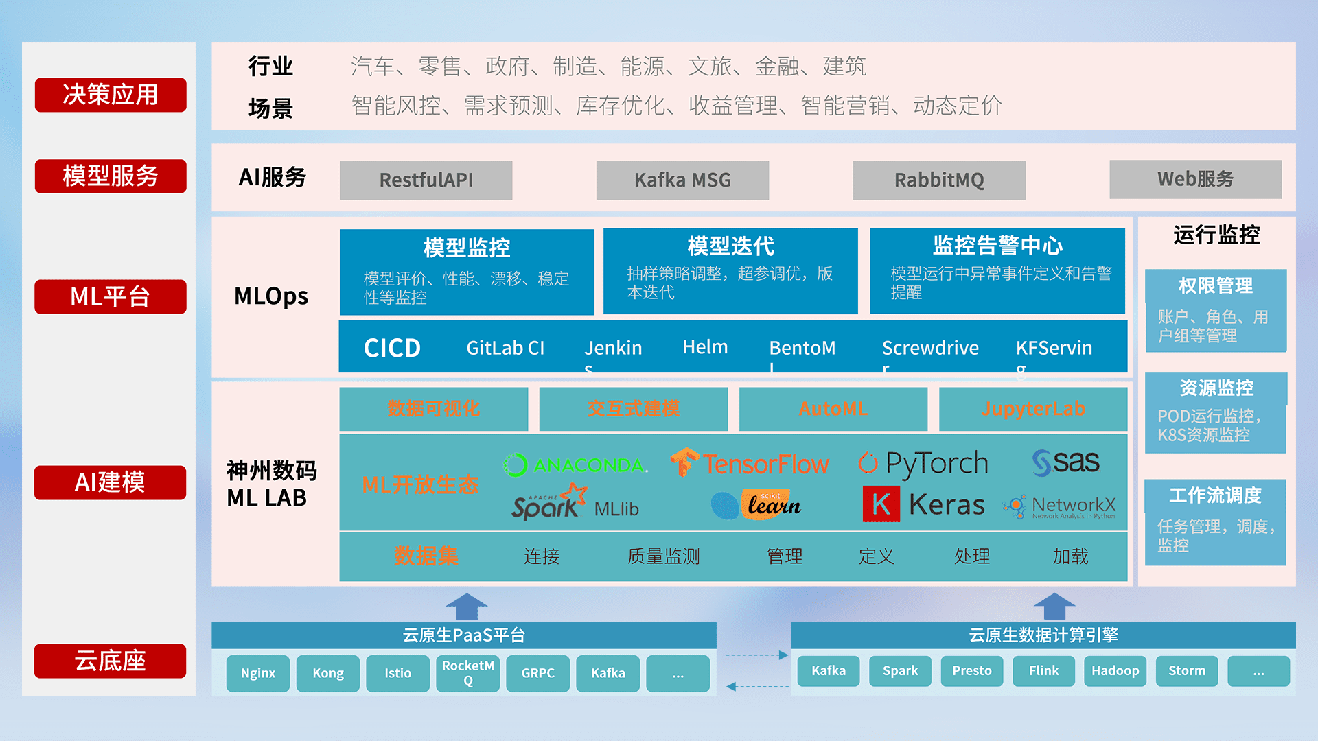 数据+模型双引擎驱动,,,,面向智能服务场景,,,,快速灵活利用AI技术,,支持业务决策,,,助力企业智能化转型破局。。